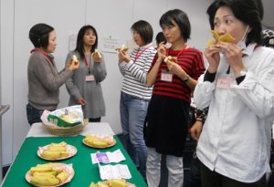 グループワークで使った五感を休ませるにピッタリのブレイクタイムに登場『バランゴンバナナ』は、会場にいる メンバー全員が一度は購入経験のある組合員同士ならではの共通商品でした!
