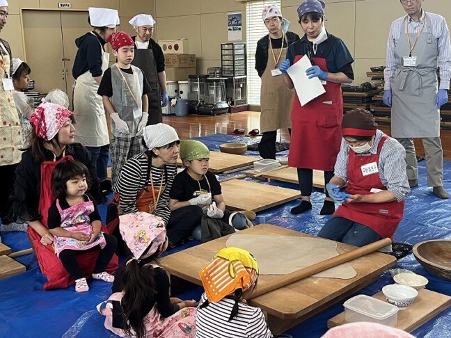 宿泊先の「スカイトピア遊ランド」にて、上越に伝わるそば打ちの文化について学びます。