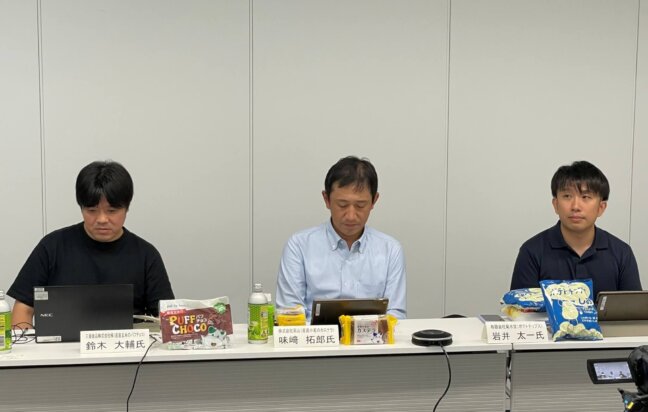 ▲登壇したメーカー講師の鈴木さん(左)、味崎さん(中央)、岩井さん(右) 開始直後は、緊張の面持ちでした。