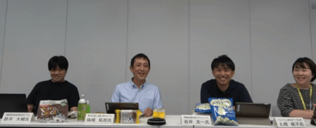 各メーカー担当者より、工場でのお菓子製造動画やクイズを交えながら、商品が作られる工程・商品のこだわりが説明されました。参加者の皆さんには、実際にお菓子を食べながら説明を聞いていただき、クイズでは積極的に手を上げ、コメントやリアクションを送るなど、楽しい雰囲気で理解を深めている様子が伺えました。