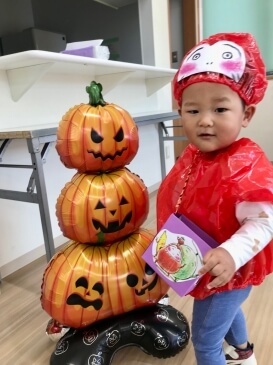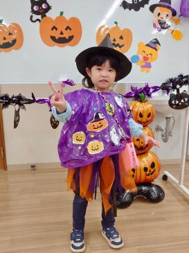 当日は「ハロウィンはいつやるの?」「おかしもらえるかな?」と、素敵な衣装を早く見せたい気持ちと、お菓子への期待で胸を膨らませていました♪