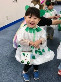 約1ヵ月前から衣装作りやお菓子を入れるカバン作りをがんばってきた園児たち。