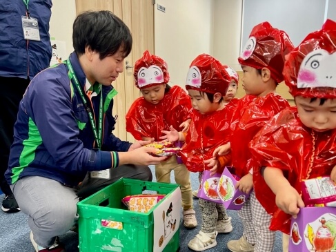 センター職員からの「かわいい〜♡」という大歓声に、子どもたちの笑顔が一段と輝きました。