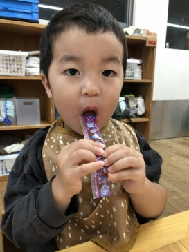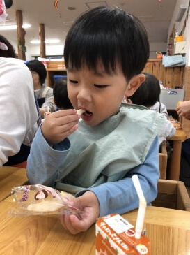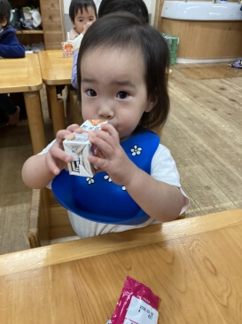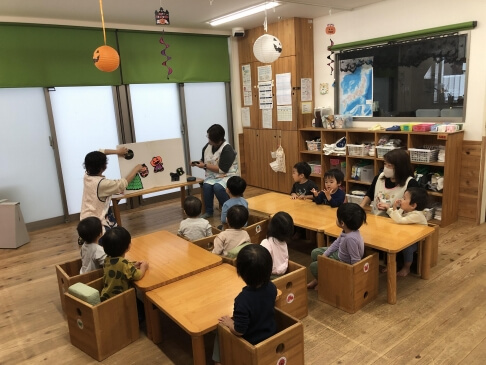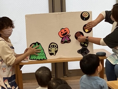 午後はハロウィンのペープサート(紙人形劇)と、園長先生から「キャロっとさん」(にんじんくだものジュース)のプレゼント♪