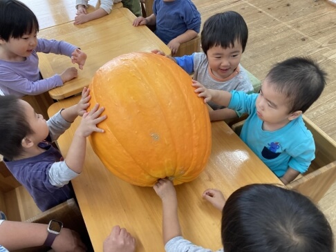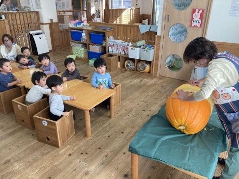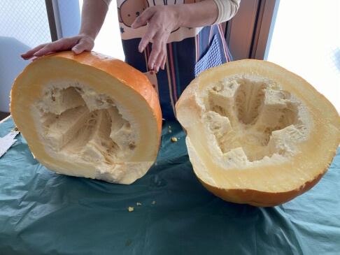 「かぼちゃの中ってこんな風になっているんだね!」と子どもたちも驚いていました。