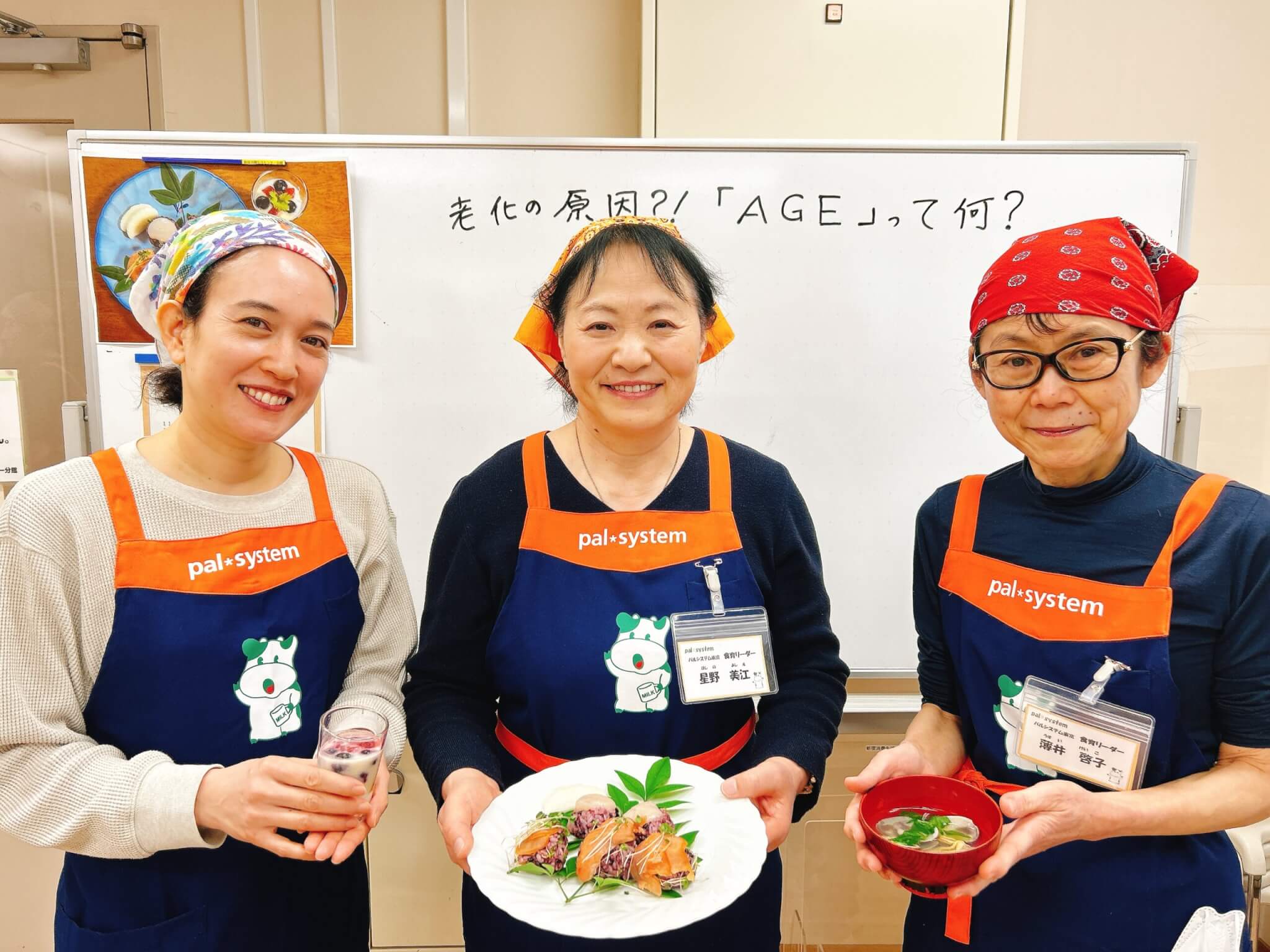 「AGEについて知らない知識があったが、説明が分かりやすく、大変勉強になりました。」「とても楽しく学ぶことができました。」「バランスの良いメニューで、何より手まり寿司が美味しかった。」など、とても好評なお声をいただきました。