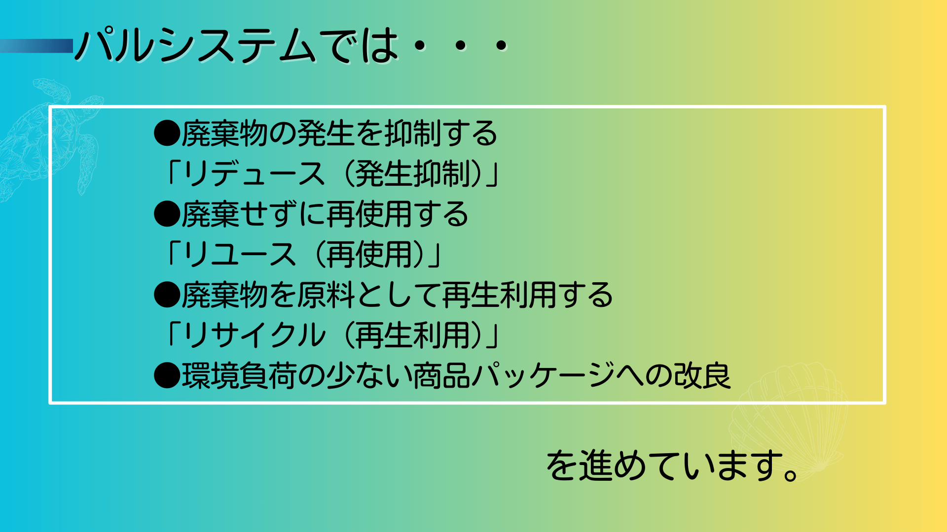「パルシステムが食への関心を高めてくれて、有難いです。とても良い映画を上映いただき勉強になりました。映画公開時に見たかったのですが、見損ねていたので、このような機会を設けていただきありがたいです。ツバル国があのような事態に陥っていたとは。自分ができることを見直す良いチャンスになりました。」などの感想が語られました。