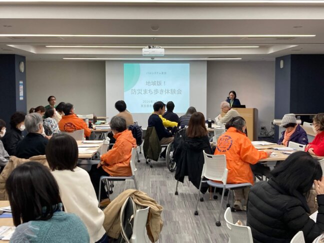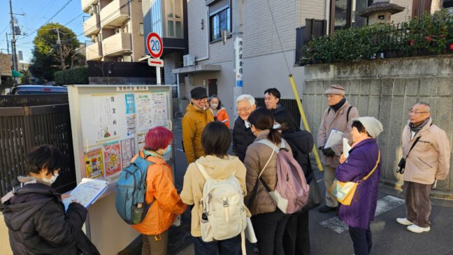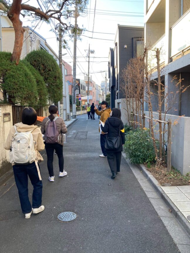 最初に防災まち歩きをする上で、何が必要なのかやどういった視点でまち歩きをするのかなど、ポイントを教えていただきました。「災害時のまち」をイメージしながら実際にまちを歩き、防災・減災の視点で地域を再確認することを目的としました。単なる知識・技術習得ではなく、参加者同士の交流を通じて「自分たちのまちは自分たちで守る」という意識を重視できました。