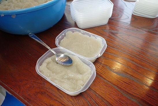 材料を混ぜて、こねて、だんだんと粘り気が強くなっていきます