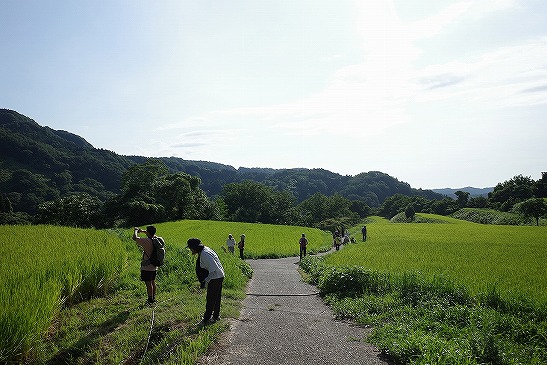 前日に訪れた棚田へ再び、お子さまたちが待ちに待った「生きもの調査」をしに訪れました。