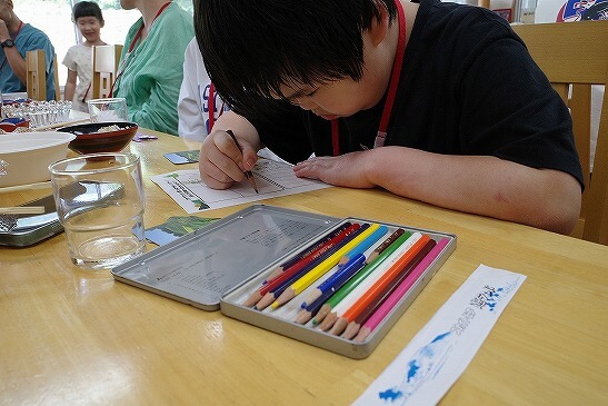 夏休みの思い出に絵日記を作成中