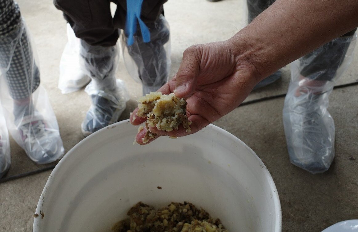 えさやりにも挑戦させてもらいました!デントコーンを発酵させたものをバケツであげました。むしゃむしゃと気持ちよく食べてくれます♪