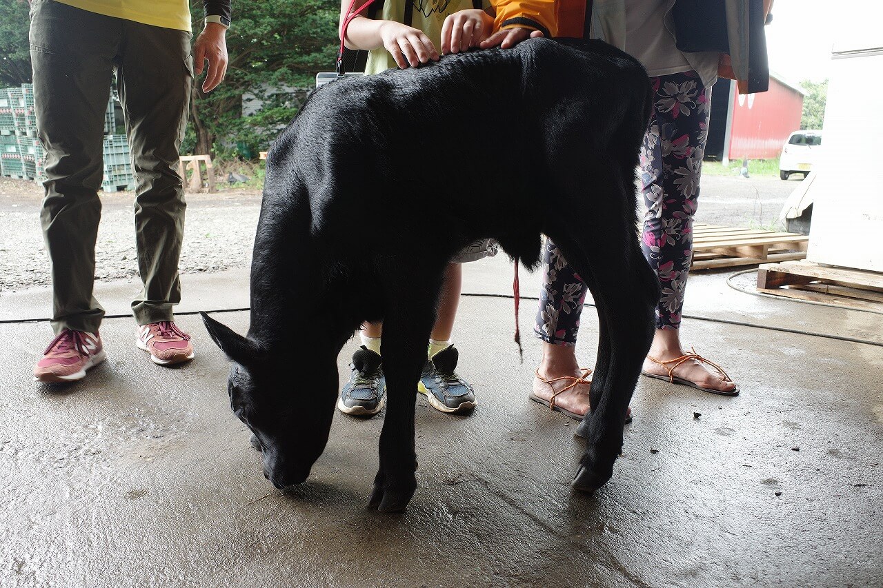 生まれたての子牛の毛はとってもやわらかく、触れると温かく「いのち」を感じました。
