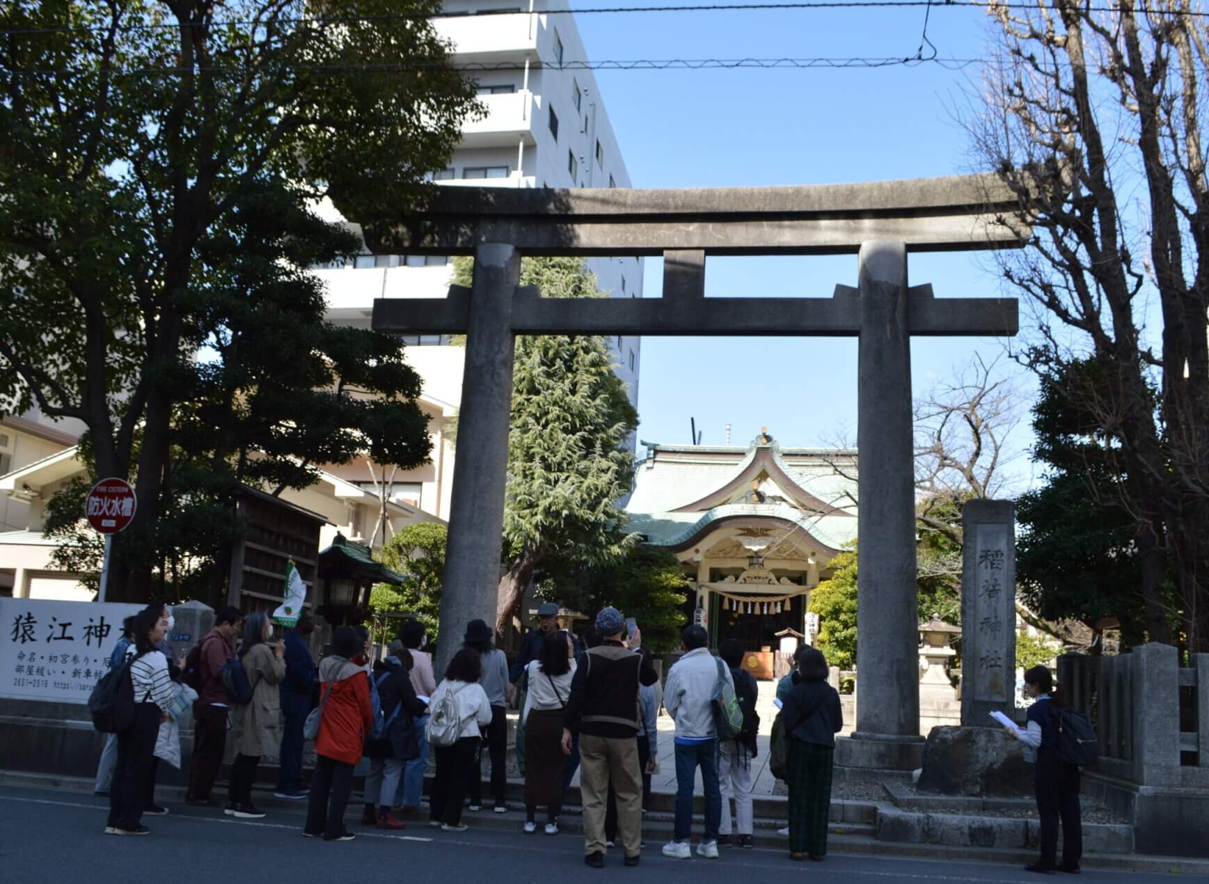 続いて訪れた「猿江神社」では、境内に残る石灯籠を見学しました。石の表面が熱風によって剥がれ落ち、変色している様子は、当時の火災がいかに凄まじいものであったかを物語る生々しい証拠となっています。