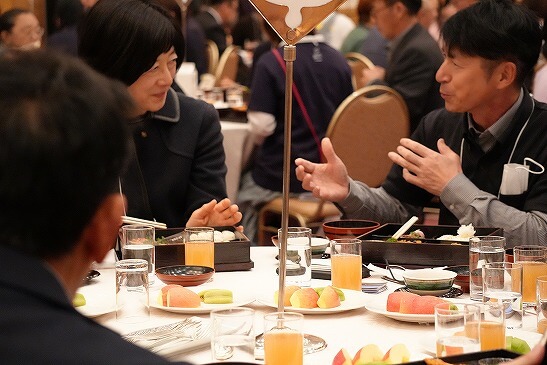 生産者と組合員が、楽しく交流をしていただきたいという想いから、会場であるホテルに昼食を用意していただき、ランチ交流会とさせていただきました。