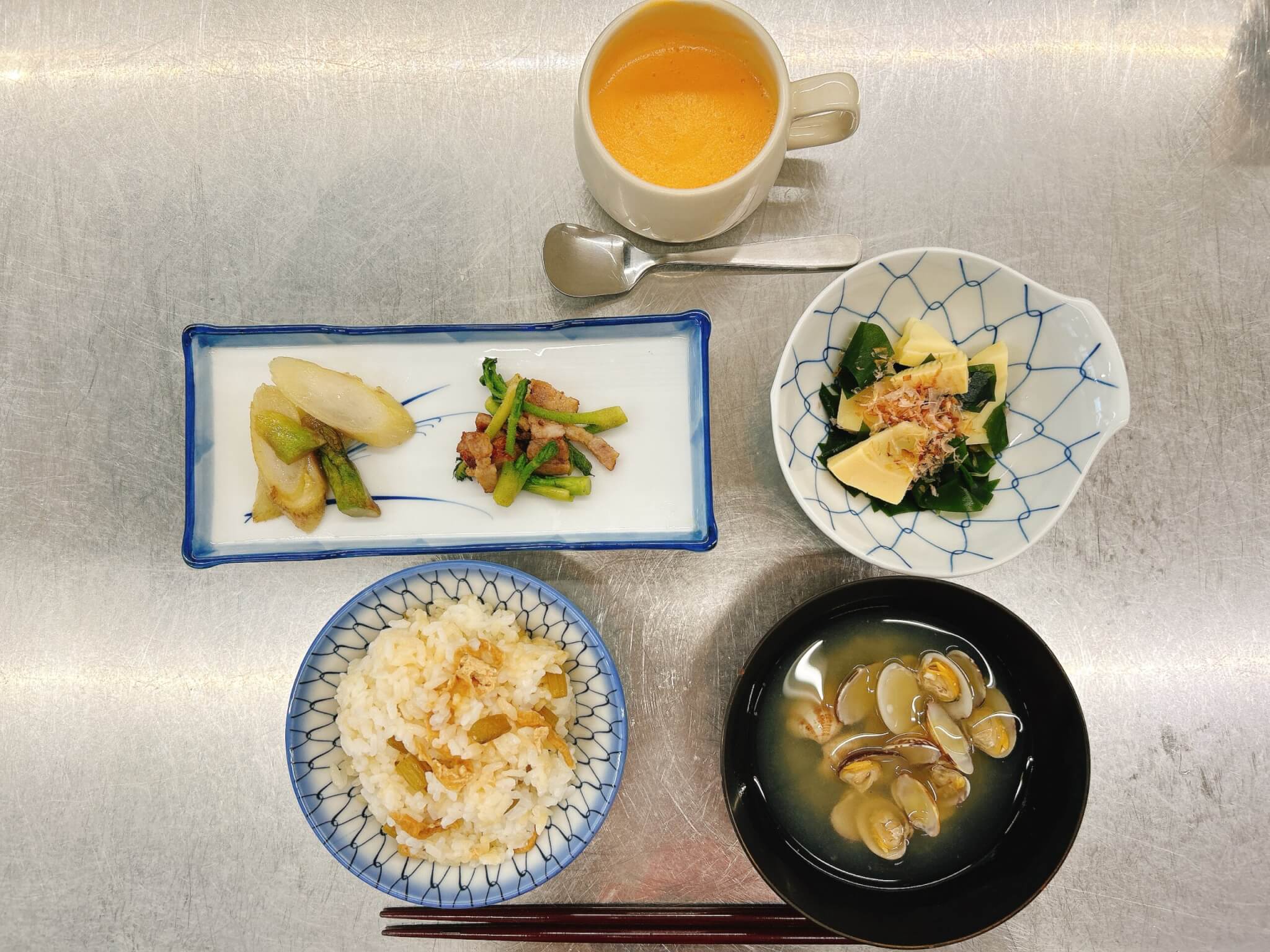 あさりのおみそ汁と人参ブランマンジェは食育リーダーで調理し、提供しました。