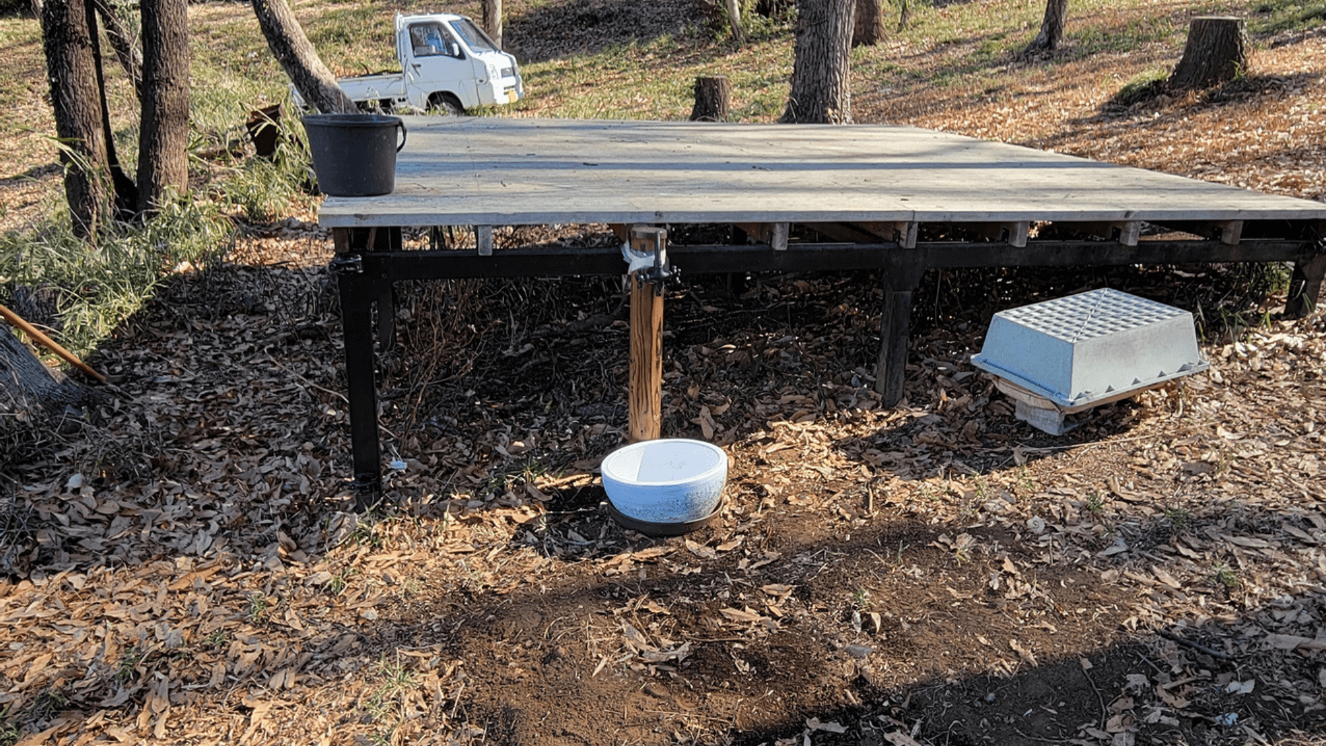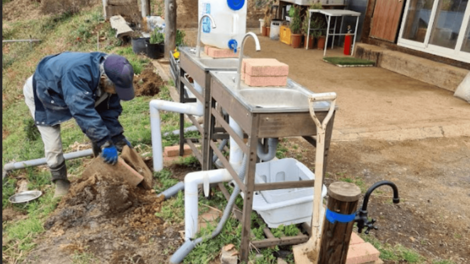 開設されて20年。これまで里山内には水道がなく、山の下の民家脇にある水道から水を汲み上げ、山まで運んでタンクに入れ替えて手洗いや清掃に使用してきました。しかし、タンクの老朽化や汲み上げ作業の負担に加え、今後組合員向けイベントの可能性をさらに広げていくことなどを鑑み、今回、民家脇の水道から水道管を伸ばし、適切な場所に水道を設置することができました。