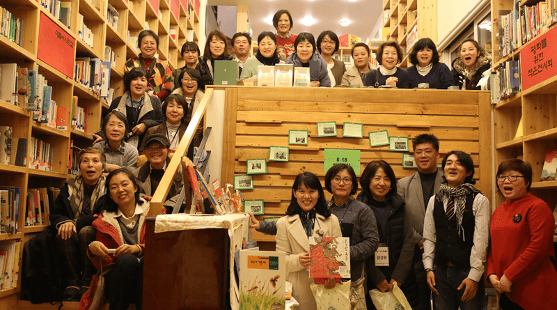 午後は坡州市へ移動し、「平和を抱く家(平和図書館)」で資料展示見学と済州島4.3事件、済州島をテーマにした「木の判子」絵本の朗読をきき交流しました。