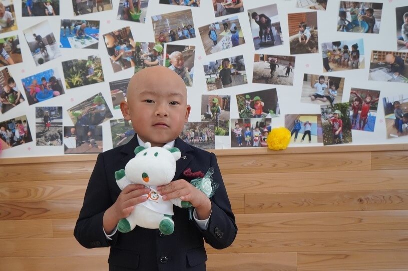 記念品の「こんせんくん」に大喜び!たくさんの思い出を胸に小学生になっても心優しいR君のままでいてくださいね。