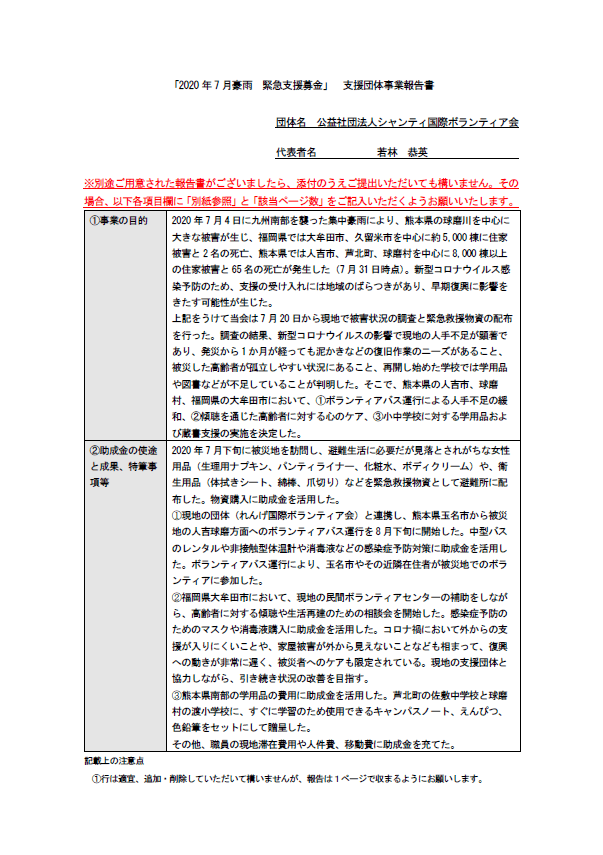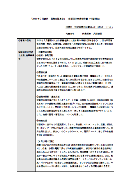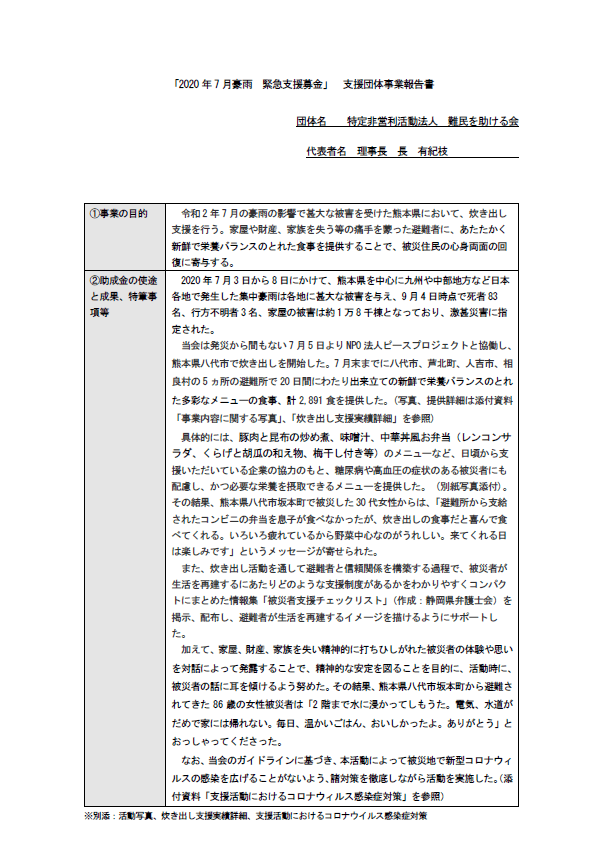 「2020年7月豪雨」災害緊急支援募金 支援団体活動報告