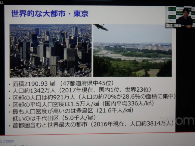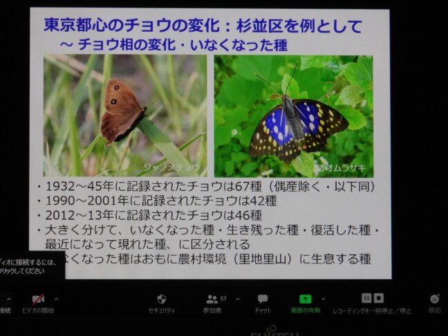 プログラムの第2部では、「世界的な大都市、東京でなぜたくさんの生き物がくらしているのか」という、興味深いテーマについての説明の後、「東京でくらすチョウ」について種ごとの説明がありました。