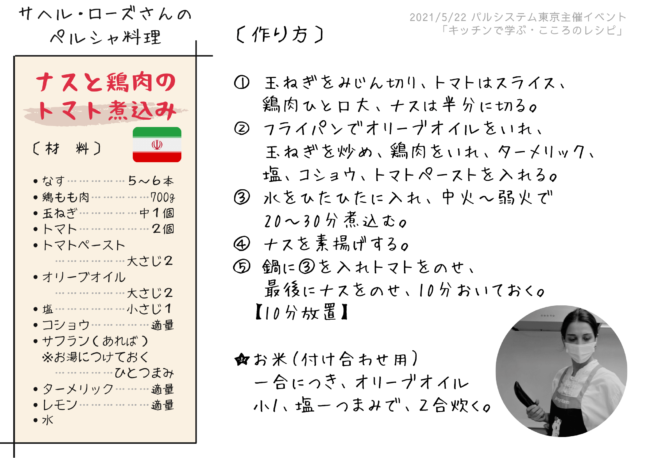 パルシステム東京では2021年5月22日(土)、「オンライン学習会 ~キッチンで学ぶ・こころのレシピ~ #未来へつなげ2030」を開催しました。講師は、俳優でタレントのサヘル・ローズさんに務めていただきました。