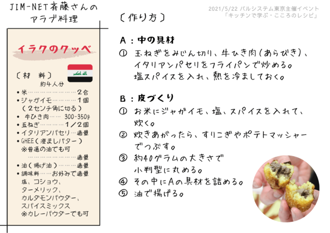 俳優サヘル・ローズさんと国際NGO、JIM-NETの海外事業担当スタッフ斉藤亮平さんをお招きし、イランとイラクの中東料理に平和への思いを込めた企画を開催しました。