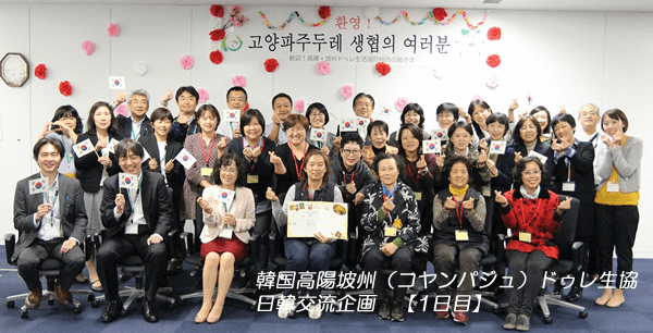 韓国・高陽坡州(コヤン・パジュ)ドゥレ生協とパルシステム東京との交流は、韓国生協の希望でパルシステム連合会からの紹介で始まりました。韓国は、歴史的、地理的にも最も近い隣国です。お隣の国のことをお互いに理解することで、戦争のない『平和』な世界を、東アジアから作っていきたいという思いがあります。