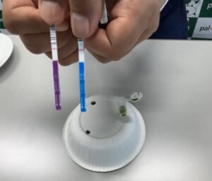 ③試験管に試験紙を入れ、10分ほど待ちます。