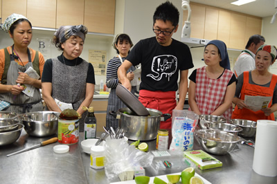 イラク・シリアで白血病などの子どもたちを支援するJIM-NETの斉藤亮平さんを講師に、中東の家庭料理を作りながら現地のお話をうかがいました。 参加者からは「シリアのイメージが変わりました。実際に現地の料理を食べたことがある方に教わったことは貴重な体験でした」などの感想が寄せられ、中東の生活・文化を感じる料理教室となりました。