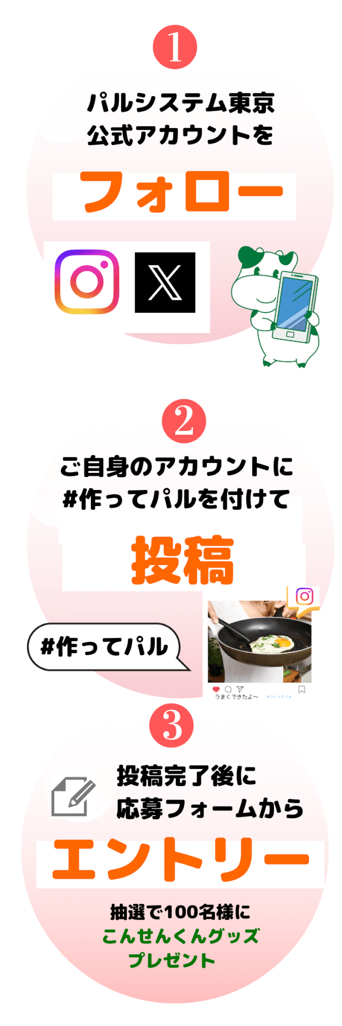 ・本キャンペーンでTwitterやInstagramに投稿いただいた写真や投稿文、SNSのアカウント名やアイコンは、パルシステム東京が管理するWEBコンテンツや、SNSアカウント、機関誌等の広告媒体に、無償で掲載させていただく場合があります(掲載にあたり、必要に応じ、写真のサイズ変更やトリミングを行う場合があります)。その場合も、応募者は、著作者人格権を行使しないものとします。