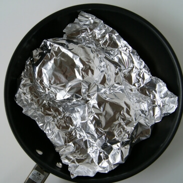 ふたをして強火で焼くとフライパンの内部が高温になり、肉の網目構造が急激に縮んで肉汁が流れ出てしまう。アルミ箔をかぶせて低温でゆっくり加熱すれば適度に火が入り、肉汁を逃さずジューシーに仕上がる