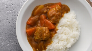 ひたひたの水(分量外)を加え、ひと煮立ちしたら火を止める。ルウを加えて混ぜ溶かし、再び火をつけて、ルウ、水(ともに分量外)で味を調える。