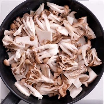 フライパンに油をひき、きのこを入れて全体に油をからめる。