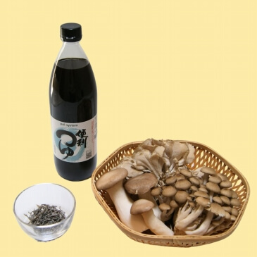 きのこ(グアニル酸)、『便利つゆ』(イノシン酸)、塩こんぶ(グルタミン酸)の異なるうまみを合わせると、相乗効果が生まれておいしさがアップ