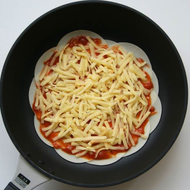 チーズが具材の水けをブロック【餃子の皮deピザ】